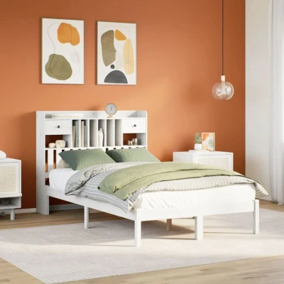 VidaXLGet a better restful night's sleep from this bookcase bed! It makes a welcoming addition to any bedroom. Stable and long-lasting frame: Solid pinewood is known for its strength and durability. Its straight grains and distinctive knots contribute to its rustic charm.Slatted base for optimal support: The bed frame is equipped with a slatted base for support and breathability for your mattress.Ample storage space: This bookcase headboard offers ample storage space to keep books, decorative items, or personal belongings within easy reach, reducing clutter in the bedroom.Space saving: This headboard is a space-saving option that can replace the need for a bedside table, helping maximise your bedroom space, and making it ideal for small or limited spaces. Good to know:A mattress is not included with this bed. We do offer a various selection of mattresses. You can check our shop for a matching mattress.