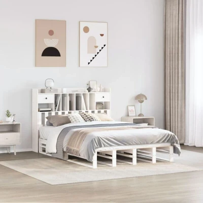 VidaXLGet a better restful night's sleep from this bookcase bed! It makes a welcoming addition to any bedroom. Stable and long-lasting frame: Solid pinewood is known for its strength and durability. Its straight grains and distinctive knots contribute to its rustic charm.Slatted base for optimal support: The bed frame is equipped with a slatted base for support and breathability for your mattress.Ample storage space: This bookcase headboard offers ample storage space to keep books, decorative items, or personal belongings within easy reach, reducing clutter in the bedroom.Space saving: This headboard is a space-saving option that can replace the need for a bedside table, helping maximise your bedroom space, and making it ideal for small or limited spaces. Good to know:A mattress is not included with this bed. We do offer a various selection of mattresses. You can check our shop for a matching mattress.