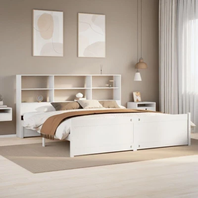 ManoManoGeneral description Get a better restful night's sleep with this bookcase bed! It makes a welcoming addition to any bedroom. The stable and long-lasting frame is made of solid pinewood, known for its strength and durability, while its straight grains and distinctive knots contribute to its rustic charm. The bed features a slatted base for optimal support and breathability for your mattress. The bookcase headboard offers ample storage space for books, decorative items, or personal belongings, helping to reduce clutter in the bedroom. The practical footboard enhances stability, secures your mattress, and prevents bedding from falling off, maintaining a neat appearance. This headboard is a space-saving option that can replace the need for a bedside table, making it ideal for small or limited spaces. Technical specifications Colour: White Material: Solid pinewood Overall dimensions: 228.5 x 186 x 110 cm (L x W x H) Assembly required: Yes Bed frame: Overall dimensions: 205.5 x 185.5 x 51