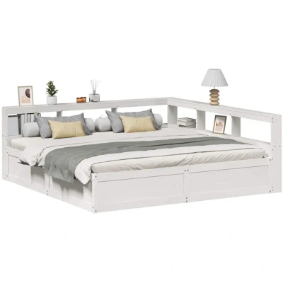 vidaXL Bookcase Bed without Mattress White 200x200cm Solid Wood Pine