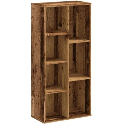 ManoManoGeneral description Create extra storage in your home and office with this stylish bookcase! It provides a perfect space for all your treasures, featuring a versatile design that can also serve as a room divider. Technical specifications Colour: Old wood Material: Engineered wood Dimensions: 50 x 25 x 105 cm (W x D x H) Maximum load capacity (total): 80 kg Assembly required: Yes Usage Designed with 7 compartments for ample storage of books, collectibles, knick-knacks, and decorative items. Easy to clean with a damp cloth due to its smooth surface. Partition design allows for organized placement and classification of items. Other information Warning: To prevent tipping, this product must be used with the provided wall attachment device.