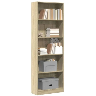 vidaXL Bookcase Bookshelf Book Rack Storage Cabinet Sonoma Oak Engineered Wood Versatile Use in Living Room, Bedroom, Hallway, Office 60x24x176 cm