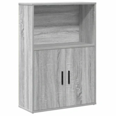 ManoManoGeneral description This bookcase offers the perfect solution for organizing your books while serving as a stylish and functional addition to your home decor. It features one shelf and two compartments with doors, providing ample space for keeping your collection of books, magazines, and documents in good order. The practical door provides enclosed storage space to keep your belongings organized, protected, and out of sight. This bookcase is ideal for your book collection and can also be used as a display shelf for your collections, photos, awards, potted plants, etc. Thanks to its smooth surface, the cabinet is easy to clean with a damp cloth and requires less maintenance. Technical specifications Colour: Grey sonoma Material: Engineered wood Overall dimensions: 60 x 24 x 85 cm (W x D x H) Shelf dimensions: 57 x 24 x 33.5 cm (W x D x H) Compartment dimensions (each): 28 x 24 x 47 cm (W x D x H) Assembly required: Yes Installation To prevent it from tipping over, this product must be