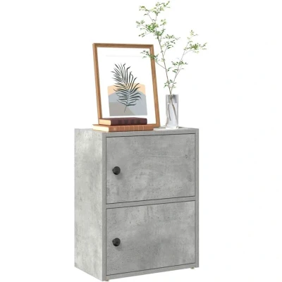 ManoManoGeneral description This bookcase offers the perfect solution for organizing your books while serving as a stylish and functional addition to your home decor. It features multiple shelves with doors, providing ample space for keeping your collection of books, magazines, and documents in good order. The practical door design allows for enclosed storage, keeping your belongings organized and out of sight. Additionally, the door can be installed on either the left or right side for added convenience. Technical specifications Color: Concrete grey Material: Engineered wood Overall dimensions: 40 x 24 x 52 cm (W x D x H) Compartment dimensions (each): 36.5 x 24 x 23 cm (W x D x H) Assembly required: Yes Usage Easy to maintain: Thanks to its smooth surface, the cabinet is easy to clean with a damp cloth and requires less maintenance. Other information Warning: To prevent it from tipping over, this product must be used with the provided wall attachment device.