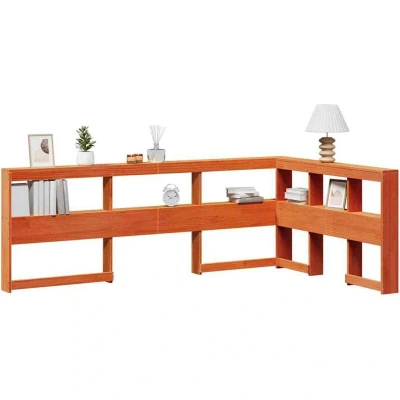 vidaXL Bookcase Headboard L Shaped Solid Pine in Wax Brown, 138.5cm x 208.5cm W 80cm H Freestanding Bed with Storage Shelves for Bedroom