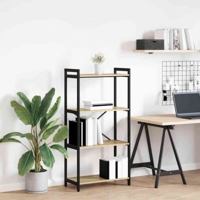 ManoManoGeneral description This bookshelf is a perfect blend of industrial design and practical storage, crafted for modern living spaces. Made from engineered wood with sturdy steel accents, it is both visually appealing and functional. Ideal for displaying books and decorative items, it fits seamlessly into various environments, from vibrant living rooms to dedicated home offices. Its industrial aesthetic adds a contemporary touch, making it suitable for both home and work settings. Technical specifications Colour: Sonoma oak Material: Engineered wood Overall dimensions: 60 x 30 x 118 cm (L x W x H) Max weight capacity: 20 kg Assembly required: Yes SKU: 868390 EAN: 8721288665256 Other information