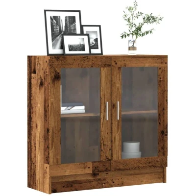 ManoManoGeneral description This book cabinet, featuring a sleek and classic design, is a decorative and practical addition to your home decor. Made from high-quality engineered wood, it offers strength, stability, and moisture resistance. Technical specifications Colour: Old wood Material: Engineered wood Overall dimensions: 82.5 x 30.5 x 80 cm (W x D x H) Assembly required: Yes Usage Ample storage space with 2 spacious compartments for magazines, books, DVDs, multimedia devices, and decorative items. Practical glass doors to keep items dust-free while displaying them. Versatile usage as a storage solution for any living space. Easy to maintain with a smooth surface that can be cleaned with a damp cloth. Other information Warning: To prevent tipping, this product must be used with the provided wall attachment device.