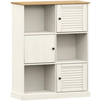 VidaXLThis wooden bookcase provides an ideal solution for organising your books and will add a touch of rustic charm to your interior. Solid pine wood: Solid pine wood is a beautiful natural material. Pine wood has a straight grain, and the knots give the material its signature, rustic look. Made of solid pine wood, the bookshelf is durable and sturdy.Ample storage space: This storage cabinet has 6 compartments, providing ample space for keeping your collection of books, magazines, and documents in good order.Easy to maintain: The book shelf is easy to clean with a damp cloth and requires less maintenance.Metal knobs: The storage shelf comes with metal knobs that make it easy to open and close the shelving unit, while adding to the extra beauty. Warning:To prevent it being overturned, this product must be used with the provided wall attachment device.