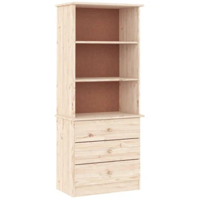 This wooden bookcase provides an ideal solution for organising your books and will add a touch of rustic charm to your interior. Solid pine wood: Solid pine wood is a beautiful natural material. Pine wood has a straight grain, and the knots give the material its signature, rustic look. Made of solid pine wood, the bookshelf is durable and sturdy.Ample storage space: This storage cabinet has 3 open compartments and 3 drawers, providing ample space for keeping your collection of books, magazines, and documents well-organised and within reach.Versatile: This multifunctional book shelf can be used as a storage shelf or as a display shelf in your living room to meet your different needs.Easy to maintain: The storage shelf is easy to clean with a damp cloth and requires less maintenance.Untreated surface: As the display cabinet is crafted from solid pine wood with no finish, you can keep its natural colour but also can paint or lacquer it as you prefer. Warning:To prevent it being overturned, this product must be used with the provided wall attachment device.