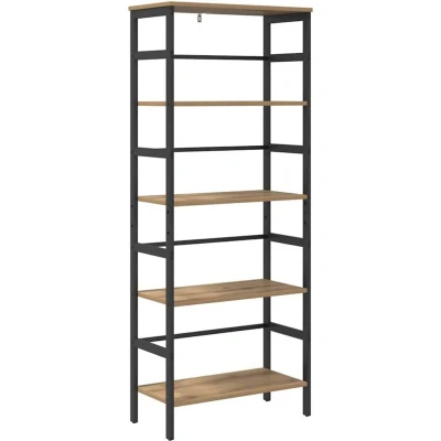 This Industrial Bookshelf stands as a striking exemplar of contemporary industrial aesthetics, characterized by its sleek, bold lines and raw materials, making it an ideal addition to home offices, studies, or living rooms. With its robust structure crafted from engineered wood and steel, this freestanding unit seamlessly combines functionality with modern flair. The richly layered shelves offer ample room for storing books, decor, and other essentials, embodying both style and utility as it complements a variety of urban and rustic settings. Industrial Style Design The bookshelf elevates any environment with its industrial-inspired design, reflecting the rugged charm of industrial spaces with clean lines and a bold, black finish. This aesthetic appeal makes it a versatile centerpiece, fitting seamlessly into home offices, living rooms, or studies, providing a modern edge to the decor. Ample Storage Capacity Featuring numerous rectangular board shelves made from engineered wood, this bookshelf ensures each shelf is ready to hold a substantial amount of books, decor items, or office essentials. Its easy-access shelves invite organization and display, seamlessly integrating utility and style for a tidy, stylish space. Robust Construction Built with a steel frame and square legs, the bookshelf guarantees steadfast support, ideal for heavy loading. The engineered wood surface adds durability, making it abrasion-resistant and low-maintenance, ensuring the bookshelf's longevity through daily use, while maintaining its aesthetic appeal. Adjustable Stability Levelers on the bookshelf’s feet provide easy adjustments to stabilize it on uneven surfaces. The inclusion of levelers not only protects floor finishes but also ensures that the bookshelf maintains its sturdiness and balance even on slightly sloped floors. Simple Maintenance Instructions Designed with convenience in mind, the bookshelf surfaces require minimal maintenance. Wipe with a dry cloth to keep it dust-free and maintain its pristine appearance. Avoid harsh chemicals and abrasives, preserving its finish against wear, tear, and unnecessary cleaning-induced deterioration.