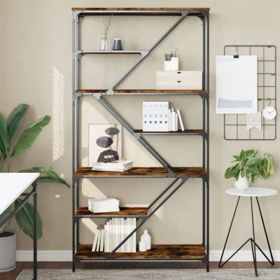 vidaXL Bookshelf Smoked Oak 91x36x176 cm Engineered Wood and Steel