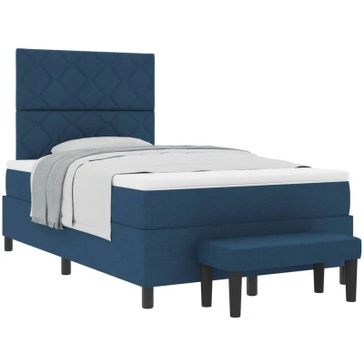 vidaXL Box Spring Bed with Mattress & Bench Blue 120x200 cm Fabric