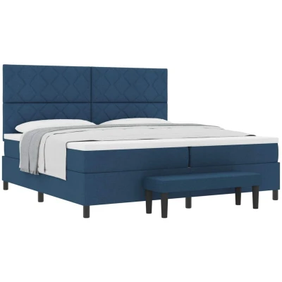 vidaXL Box Spring Bed with Mattress & Bench Blue 200x200 cm Fabric