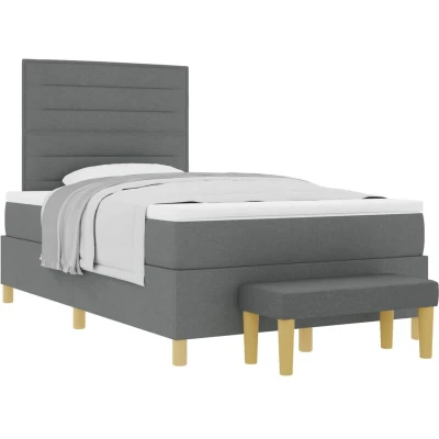 vidaXL Box Spring Bed with Mattress & Bench Dark Grey 120x200 cm Fabric