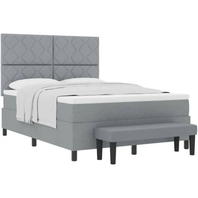 Vidaxl Box Spring Bed with Mattress & Bench Light Grey 160x200 cm Fabric