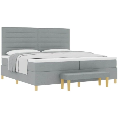 vidaXL Box Spring Bed with Mattress & Bench Light Grey 200x200 cm Fabric