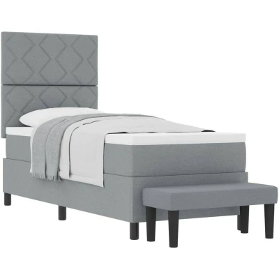 vidaXL Box Spring Bed with Mattress & Bench Light Grey 80x200 cm Fabric