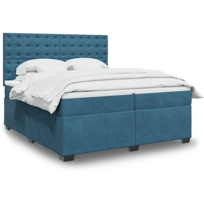 vidaXL Box Spring Bed with Mattress Blue 200x200 cm Velvet