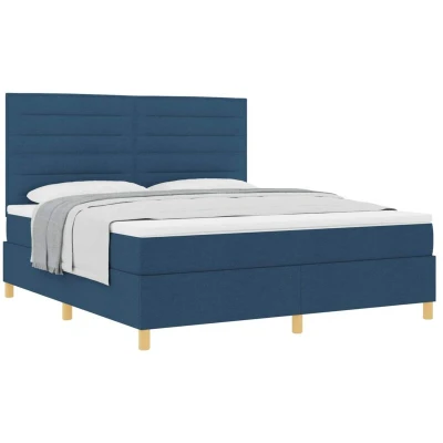 vidaXL Box Spring Bed with Mattress Blue Super King Fabric