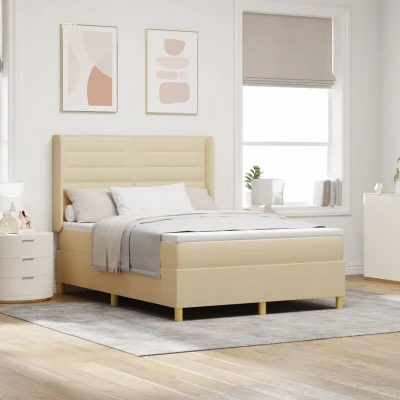 vidaXL Box Spring Bed with Mattress Cream 140 x 190 cm Fabric