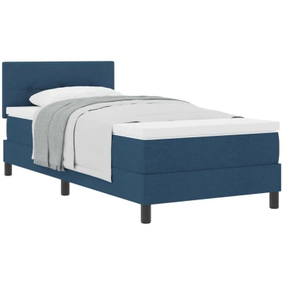 ManoManoGeneral description This box spring bed with mattress brings modern simplicity and functionality to your bedroom. Its clean lines and minimalist design make it both stylish and practical for all sleepers. The adjustable headboard lets you set the height to fit your sleeping habits, while the sturdy engineered wood frame ensures long-lasting support. The foam mattress, with medium firmness and multi-zone support, provides a comfy night’s sleep no matter how you like to snooze. With breathable fabric, this bed combines style and comfort perfectly, making it a great fit for modern home decor. Technical specifications Colour: Dark blue Material: Fabric Frame material: Engineered wood Overall dimensions: 203 x 80 x 88 cm (L x W x H) Mattress size: Small single Max number of people: 1 Mattress material: Foam Assembly required: Yes Included Components: Bed frame, headboard, mattress, mattress topper Care & Maintenance Easy to maintain; just wipe with a damp cloth to keep it clean and fresh.