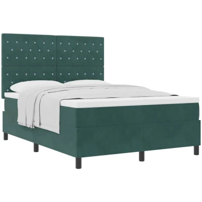 vidaXL Box Spring Bed with Mattress Dark Green 140x190 cm Velvet