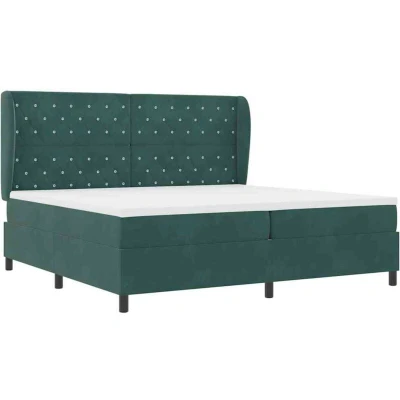 vidaXL Box Spring Bed with Mattress Dark Green 200 x cm Polyester