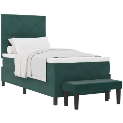 vidaXL Box Spring Bed with Mattress Dark Green 90 x 190 cm Velvet