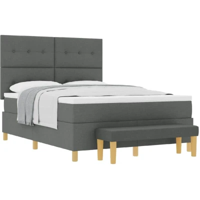 vidaXL Box Spring Bed with Mattress Dark grey 140 x 190 cm Fabric