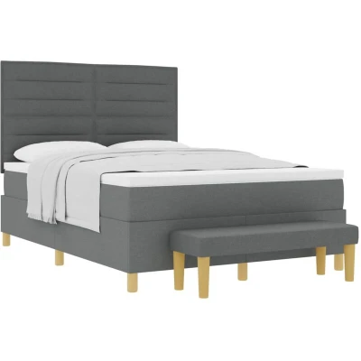 vidaXL Box Spring Bed with Mattress Dark Grey 140 x 190 cm Fabric