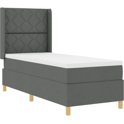 ManoManoGeneral description This Box Spring Bed with Mattress in Dark Grey combines modern simplicity with functionality, creating a stylish and comfortable sleeping environment. Its clean lines and minimal design make it a perfect addition to contemporary bedrooms, while the multi-zone mattress ensures customized support for all sleeping positions. The adjustable headboard allows for height adjustments to suit personal preferences, enhancing convenience and comfort. Technical specifications Colour: Dark grey Material: Fabric Frame material: Engineered wood Overall dimensions: 203 x 80 x 88 cm (L x W x H) Mattress size: Small single Mattress material: Foam Max number of people: 1 Assembly required: Yes EAN: 8721158208453 SKU: 3338798 Brand: vidaXL Included Components 1x Bed frame 1x Headboard 1x Mattress 1x Mattress topper Care & Maintenance Easy to clean with a damp cloth Regular cleaning helps maintain comfort and appearance Other information