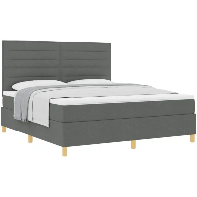 vidaXL Box Spring Bed with Mattress Dark Grey Super King Fabric