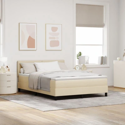 vidaXL Box Spring Bed with Mattress LED Cream 140 x 190 cm Fabric