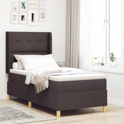 vidaXL Box Spring Bed with Mattress & LED Dark Brown 80x200 cm Fabric
