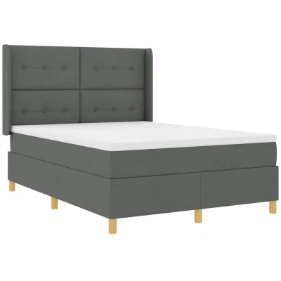 vidaXL Box Spring Bed with Mattress & LED Dark Grey 160x200 cm Fabric