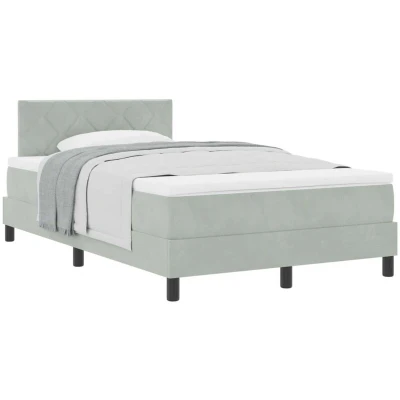 ManoManoGeneral description This strong Box Spring Bed with Mattress blends function and modern looks perfectly, making it a top choice for contemporary bedrooms. Its neat lines and soft velvet texture add a touch of class and warmth to your sleeping space. The bed’s comfy layers and multi-zone mattress provide excellent support, guaranteeing a refreshing rest each night. Enjoy sinking into a dreamy embrace every evening with this beautifully crafted bed that enhances your bedroom's vibe. Technical specifications Colour: Light grey Material: Fabric Overall dimensions: 203 x 120 x 88 cm (L x W x H) Mattress size: European small double Max number of people: 2 Mattress material: Foam Assembly required: Yes EAN: 8721158212771 SKU: 3339230 Brand: vidaXL Compatibility and accessories Complete Bed Set includes: 1x Bed frame 1x Headboard 1x Mattress 1x Mattress topper Installation Assembly required for setup. Usage Perfect for any bedroom setup, the bed’s sleek look fits a range of interior styles.