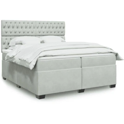 vidaXL Box Spring Bed with Mattress Light Grey 200x200 cm Velvet