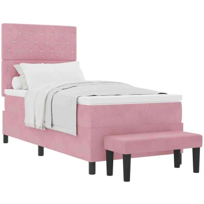 vidaXL Box Spring Bed with Mattress Pink 100 x 200 cm Velvet