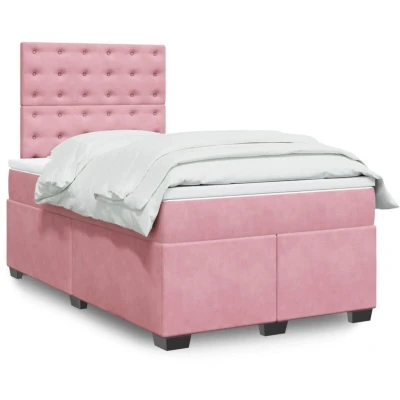 vidaXL Box Spring Bed with Mattress Pink 120x190 cm Small Double Velvet