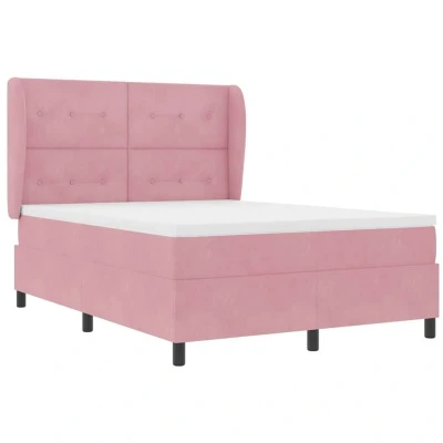 vidaXL Box Spring Bed with Mattress Pink 140 x 200 cm Velvet