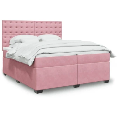 vidaXL Box Spring Bed with Mattress Pink 200x200 cm Velvet