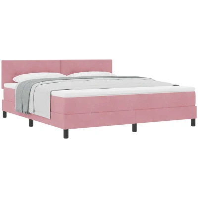 vidaXL Box Spring Bed with Mattress Pink Super King Velvet