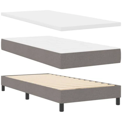 ManoManoGeneral description This Fabric Box Spring Bed with Mattress is the perfect combination of style and comfort for any modern bedroom. Its sleek rectangular design offers a mix of simplicity and practicality, featuring clean lines and a soft, inviting headboard that makes it a chic and handy centerpiece. Built for ultimate relaxation, it provides a space-saving, comfy sleep solution, ensuring peaceful nights in your sanctuary. Technical specifications Colour: Taupe Material: Fabric and engineered wood Frame material: Engineered wood Overall dimensions: 203 x 103 x 88 cm (L x W x H) Mattress size: Twin Max number of people: 1 Mattress material: Foam Headboard Size: 103 x 16 x 88 cm (W x D x H) Assembly required: Yes EAN: 8721288300782 SKU: 3341031 Brand: vidaXL Included Components 1x Bed frame 1x Headboard 1x Mattress 1x Mattress topper Care & Maintenance Keep this bed looking fresh by simply wiping it down with a damp cloth occasionally. This easy maintenance helps prevent dust buildup