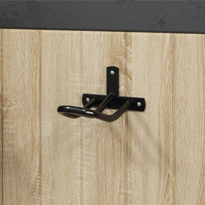 ManoManoGeneral description The horse bridle rack is an effective solution for storing messy reins, helping to keep your stable clean and tidy. This versatile bridle hanger is designed for hanging bridles, horse ropes, accessories, jackets, belts, and more, making it suitable for use in barns, tack rooms, stables, garages, entryways, and coat rooms. Technical specifications Colour: Black Material: Powder-coated iron Dimensions: 13 x 13 x 7.5 cm (L x W x H) Other information The mounting screws are not included. SKU: 172452