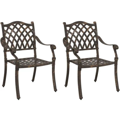 vidaXL Bronze Outdoor Chairs with Removable Cushions Weatherproof Robust Metal Frame Traditional Design for Garden, Patio or Balcony Seating Dining Room Furniture Classic