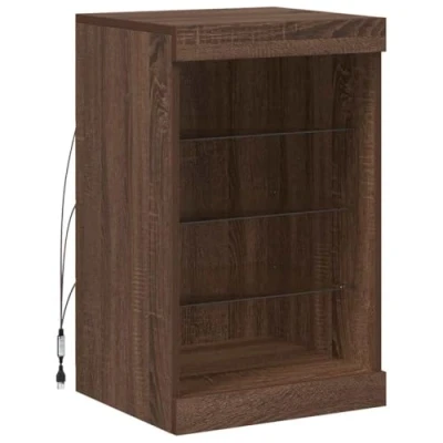 ManoManoGeneral description Decorate your room with this modern sideboard featuring LED lights, designed to blend seamlessly with any style of furniture in your home. The sideboard offers ample storage space for magazines, books, remote controls, and other small items, keeping them organized and easily accessible. Its sturdy top is perfect for displaying decorative objects, photo frames, or potted plants. Technical specifications Colour: Brown oak Material: Engineered wood, glass Dimensions: 41 x 37 x 67 cm (W x D x H) Power: DC 5V (USB power source not included) Assembly required: Yes Compatibility and accessories USB connector for power Installation Includes wall attachment device to prevent tipping Usage Do not use if any components are broken, torn, or missing. Higher voltage may cause overheating and potential fire risk. Other information