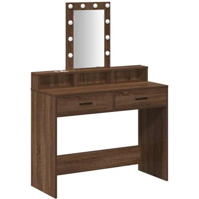 ManoManoGeneral description This modern dressing table blends style and function effortlessly—ideal for any contemporary bedroom. Made from top-notch engineered wood, it has a sleek and polished vibe, sturdy enough for today’s urban living. With its modern design, it fits right in with minimalist spaces while providing both elegance and practicality. Technical specifications Colour: Brown Material: Engineered wood Overall dimensions: 100 x 41 x 140 cm (L x W x H) Weight: 26.6 kg Lights type: LED strip lights With plane mirror Indoor use only Assembly required: Yes EAN: 8721158852069 SKU: 865178 Brand: vidaXL Usage Integrated LED strip lights make makeup and grooming easy at any hour. Convenient storage drawers provide ample space for cosmetics and accessories. The practical plane mirror offers a true reflection, enhancing the room's light and space. Functional D-Pull handles ensure easy access to drawers. Other information Please note to use only certified DC 5V input. Higher voltage may