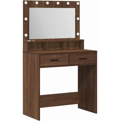vidaXL Brown Oak Wood Dressing Table/Vanity with Mirror and LED Lights Spacious Drawers for Bedroom
