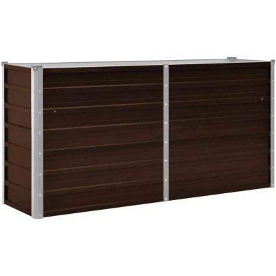 vidaXL Brown Rectangular Garden Raised Bed 160x40x77cm Durable Galvanised Steel Outdoor Planter/Flower Box for Patio, Balcony