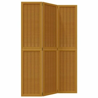 ManoManoGeneral description Bring elegance and an eye-catching decorative touch to your space with this charming room divider. Made from solid paulownia wood and bamboo, this privacy screen is not only durable but also easy to clean. Its stable frame ensures sturdiness, while the flexible design allows for easy folding to suit your needs. Technical specifications Colour: Brown Frame material: Solid paulownia wood Inner material: Bamboo Unfolded size: 105-110 x 180 cm (W x H) Panel size (each): 40 x 180 cm (W x H) Thickness: 16 mm Number of panels: 3 Assembly required: Yes Usage Great for creating private space in your bedroom, living room, office, and other interiors. Can be placed in front of a window to block intense sunlight. Other information Warning: Only for indoor use.